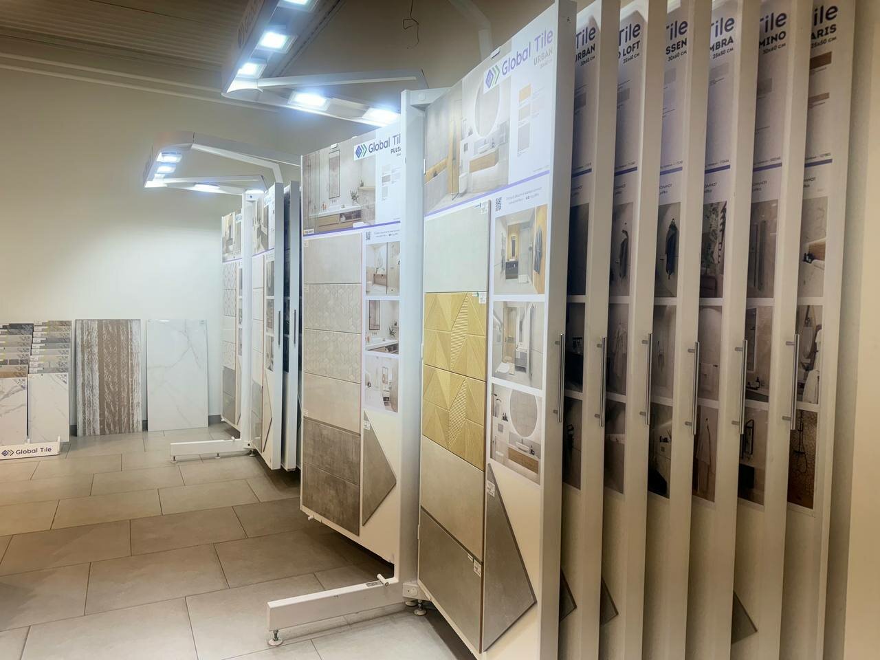 - Большой выбор плитки, ламината