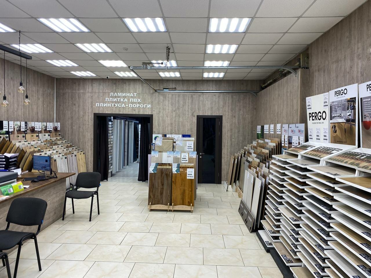 Гигантский ассортимент кварцвинила и ламината, толковые бородатые консультанты-продавцы помогут определиться с выбором. Два раза покупал там и остался доволен. Можно взять образцы если сложно выбрать цвет и с ними посмотреть в домашнем освещении. Кстати плинтусов много различных на любой вкус и кошелёк. С магазином работает свой опытный укладчик. Как итог рекомендую всем кто ищет напольные покрытия которые не найти больше нигде в городе.
