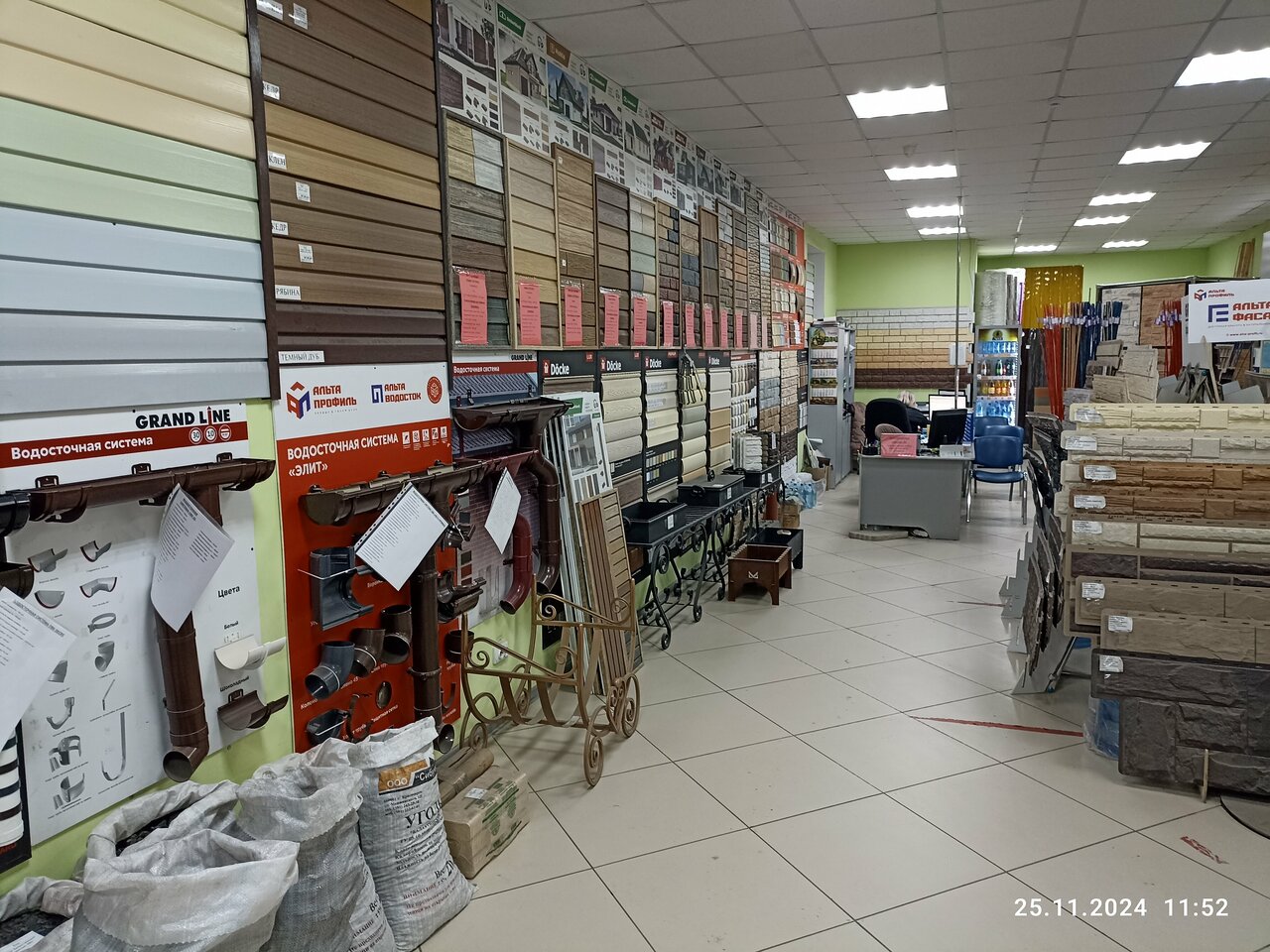 Достаточный выбор строительных и отделочных материалов, приемлемые цены.
