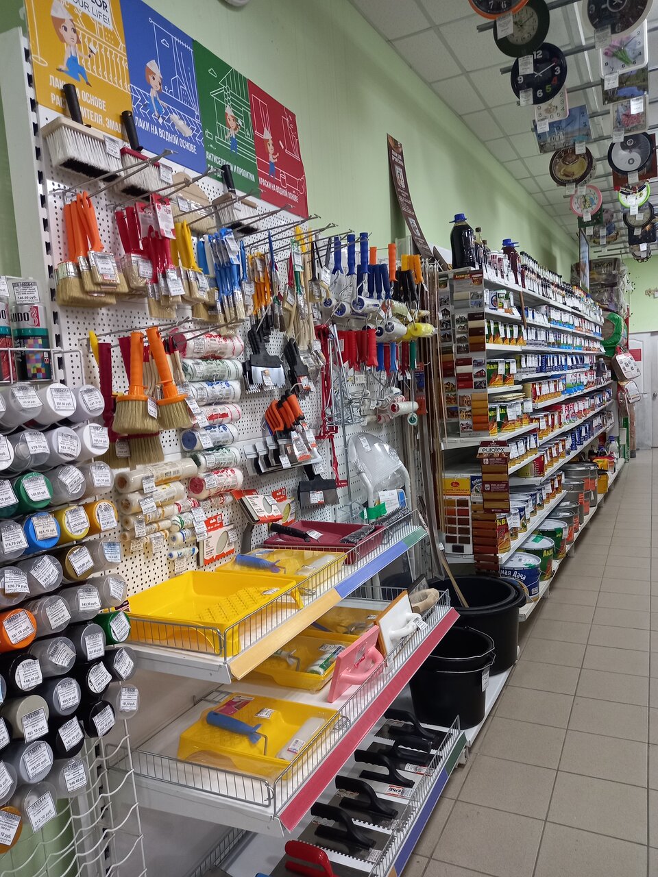 - Большой ассортимент (хозтовары, стройматериалы, посуда, бытовая химия и др.)