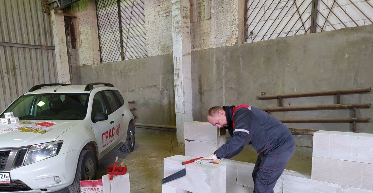 Клей для тонкошовной кладки газобетонных блоков.Инструменты для кладки газобетонных блоков.Базальтовая строительная сетка ГРАС ГРИД.Ремень стяжной.