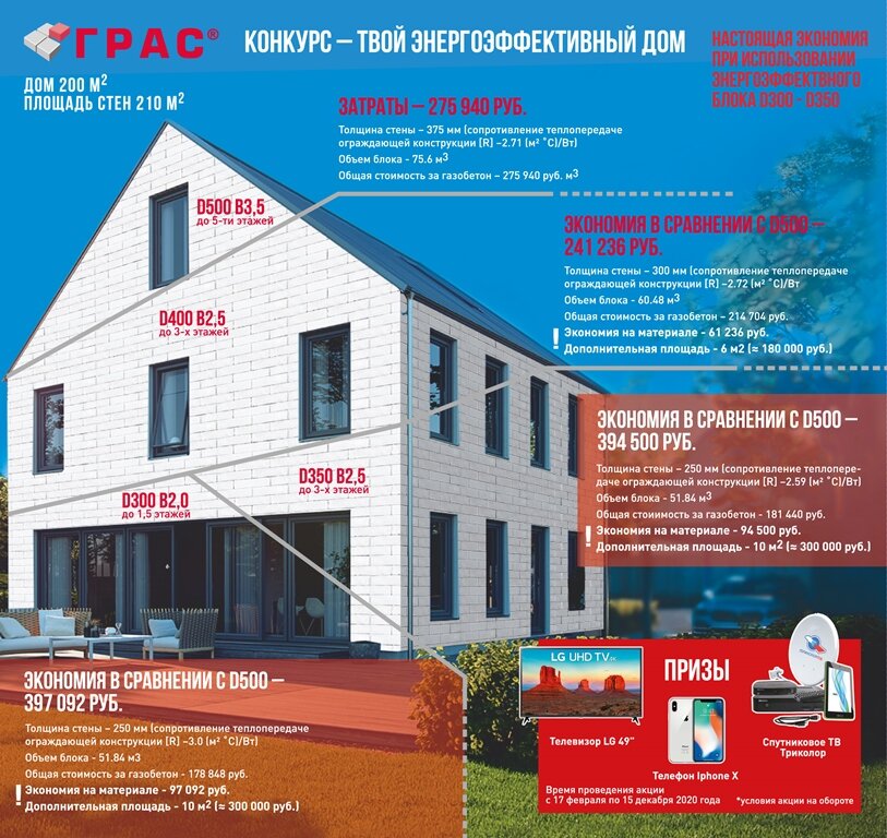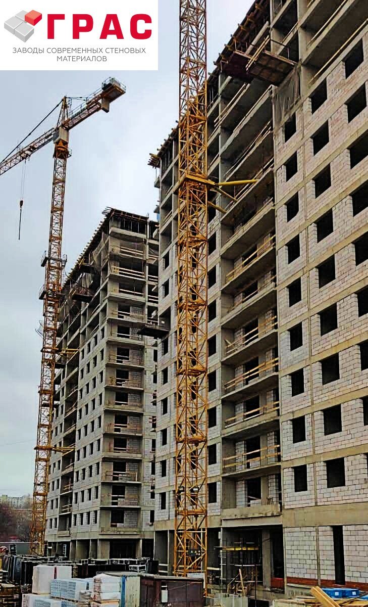 Газобетон ТМ 'ГРАС' - Используется для возведения несущих конструкций малоэтажных зданий до 3-х этажей без необходимости возведения дополнительных каркасов.