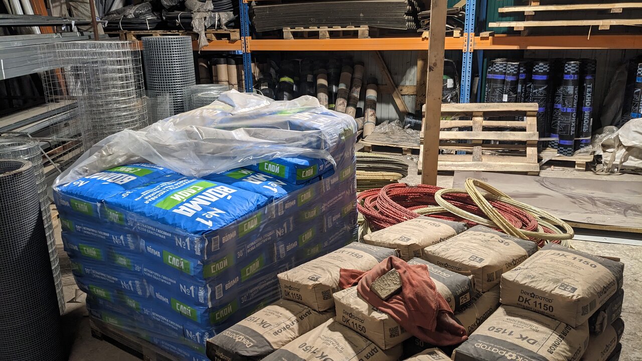 Очень хорошая база строительных материалов, большой выбор материалов, есть железо, кирпич, доски.