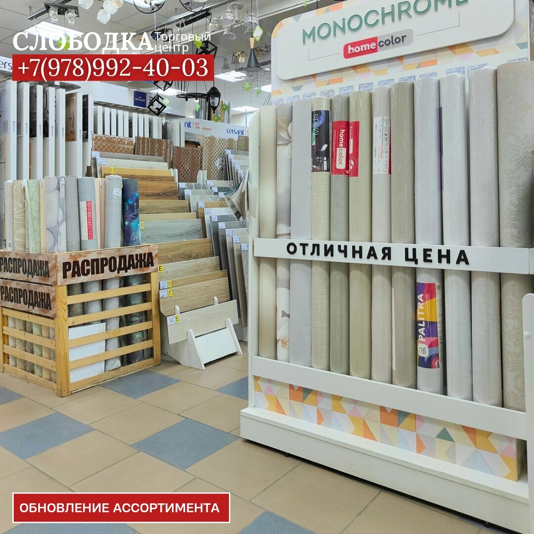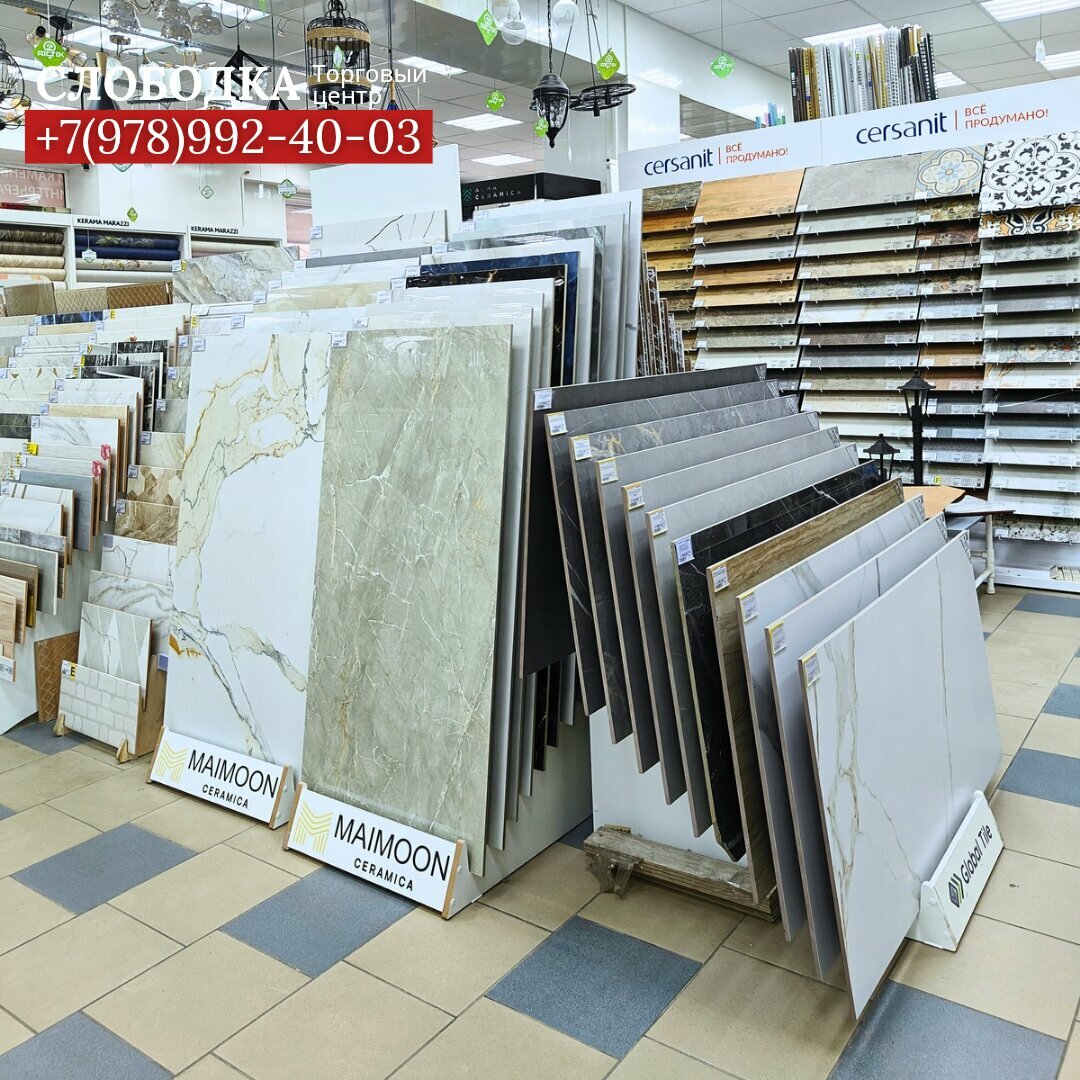 Контакты: +7 (978) 992-40-03 (менеджер) +7 (978) 117-36-58 (отделка) +7 (978) 071-06-18 (товары для дома) +7 (978) 084-90-40 (плитка) +7 (978) 992-39-86 (сантехника) +7 (978) 992-40-01