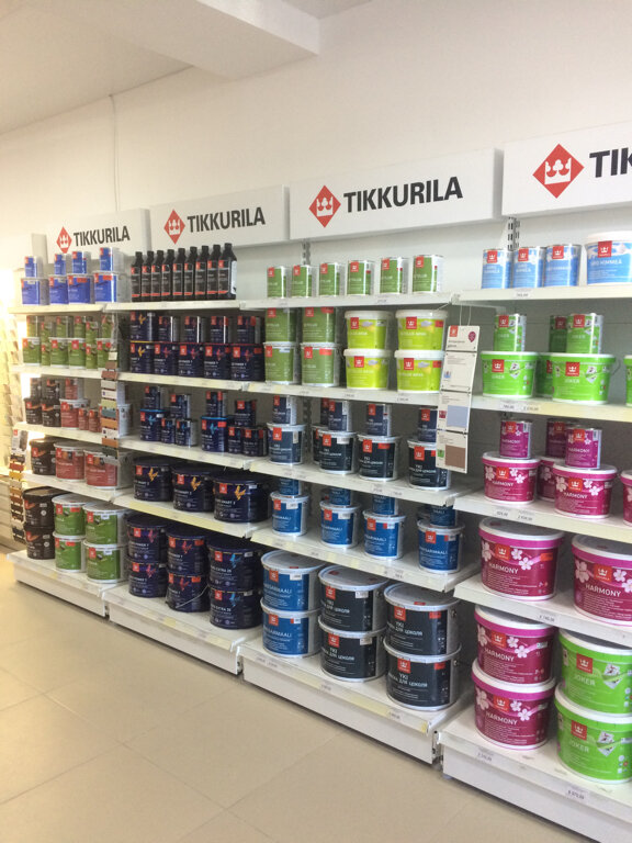 - Широкий ассортимент финских красок (Tikkurila)