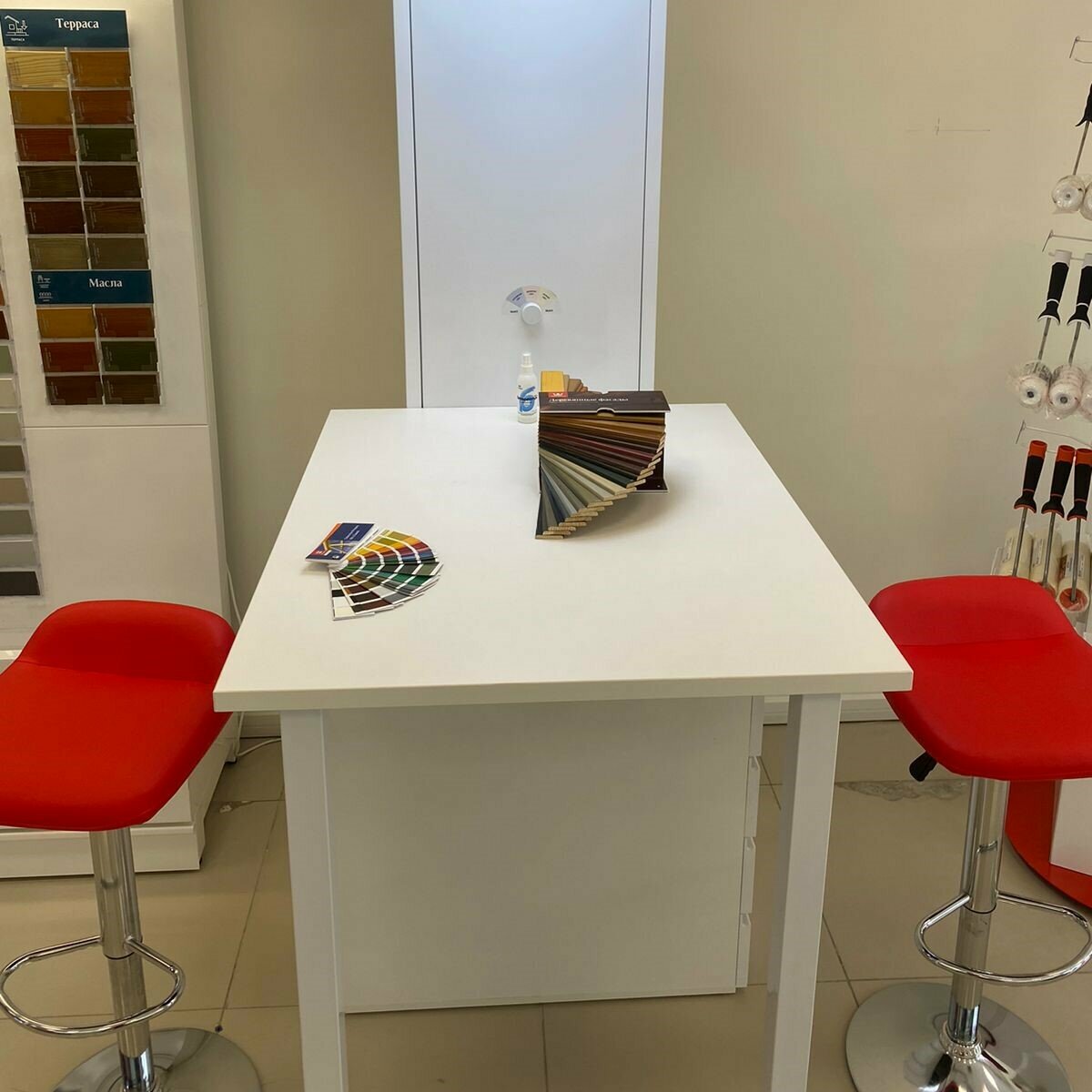 Удобное расположение,качественная консультация покупателей. Давно использую краску этой фирмы в ремонте,очень нравится по качеству и цветовой палитре
