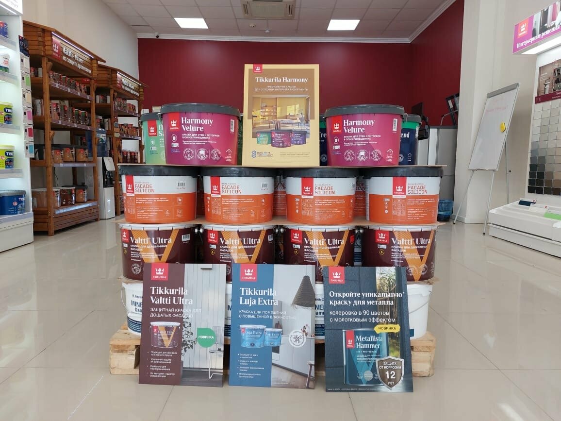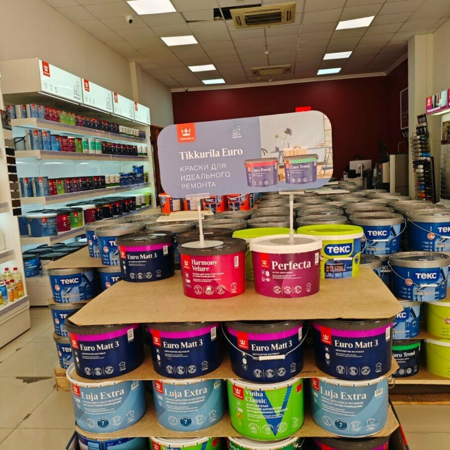 Хороший магазин, с большой палитрой. Грамотные консультанты. Помогли определиться с основой для краски. Также есть материал для подготовки стен.