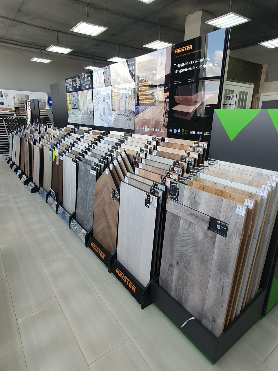 Строительный магазин, керамическая плитка, паркет