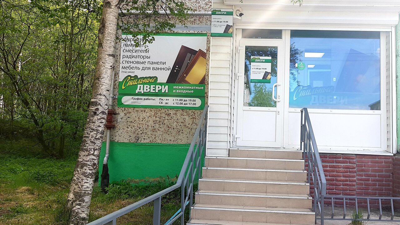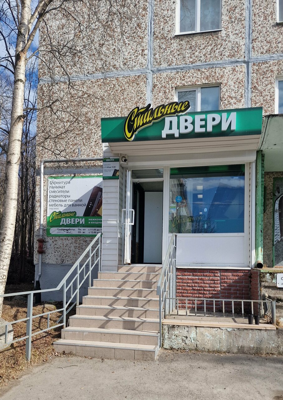 «Стильные двери» — строительный магазин в Апатитах (ул. Нечаева, 5), предлагающий широкий ассортимент дверей, лепнины из полиуретана и товаров для ремонта. Доступна оплата через Kaspi QR.