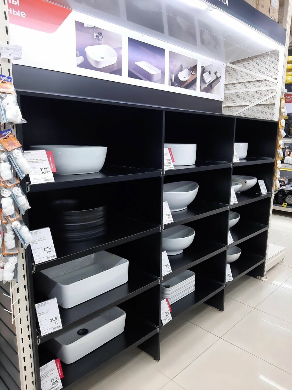 Ассортимент большой, но большинство из предметов последнее и выставочный образец. Никогда не берите выставочный образец, потому что собирают его на витрину абы-кабы, то что не использовали куда-то убирают, потом не находят. Отправят вам не полную комплектацию с витрины, не хватающие детали придется докупать самим, да и из того, что было установлено, придется закупать новыми-потому, что собрано было кое-как. Персонал всегда с вами поговорит, но сделать ничего не сможет.
