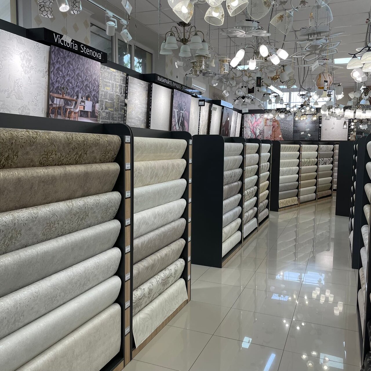 У вас большой выбор,обои и люстры,спасибо,обслуживание на УРА!!и +скидки