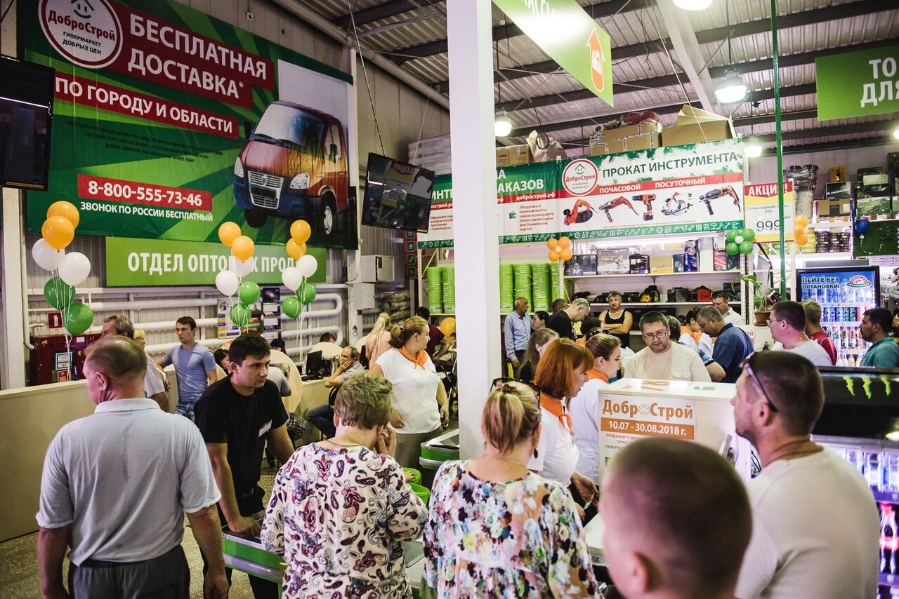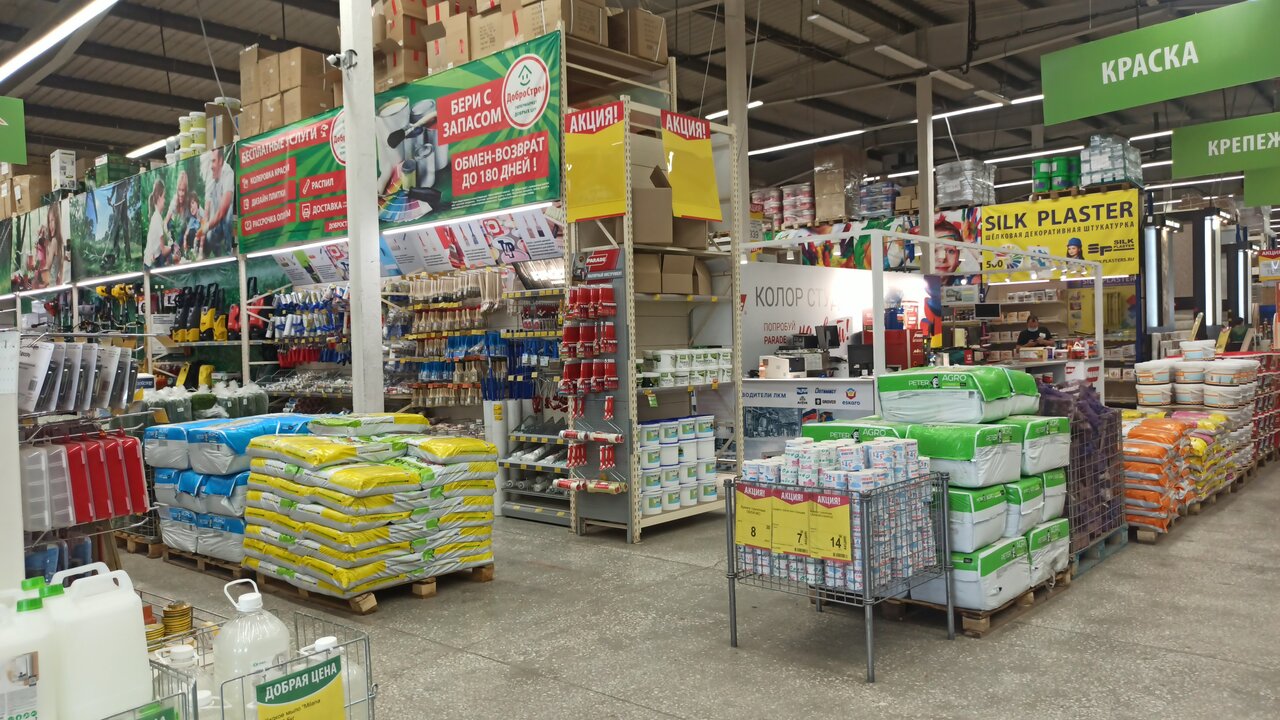 Адрес: ул. Пушкина, 46А Сайт: (https://добрострой.рф/) Режим работы: ежедневно, 08:00–22:00 Телефоны: 8 (800) 555-73-46, +7 (8512) 62-86-60