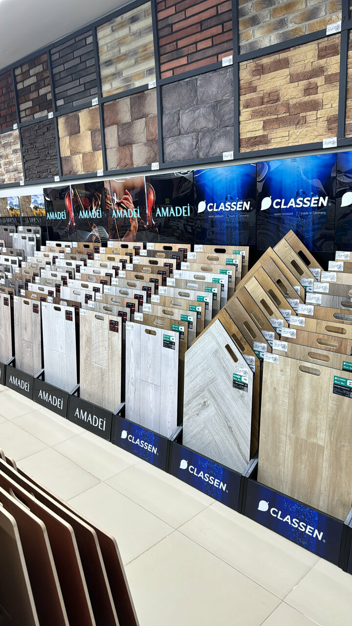 Покупал плитку на фартук, линолеум на весь дом. Хороший выбор напольных покрытий от разных производителей, можно подобрать по карману и качеству, а главное квалифицированные специалисты помогут сделать правильный выбор.