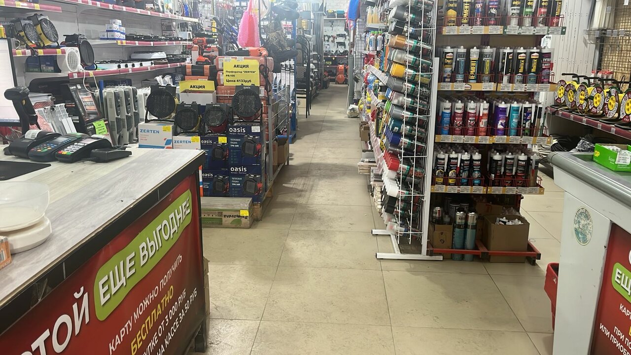 Хороший ассортимент товаров для строительства и ремонта в доме. Нормальные, адекватные цены на товары.