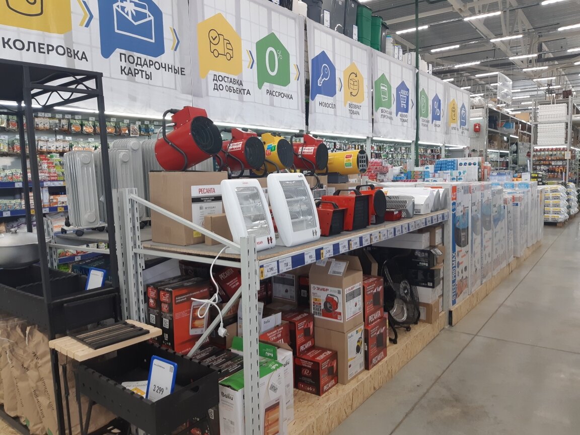 Большой и хороший магазин. Огромный ассортимент товаров для ремонта, ещё там и для дачи много чего есть, и на Новый год украшения выбор большой. Очень хороший сайт для заказов и цены в основном там ниже, чем в магазине. Режим работы удобный с 9 до 20. Часто ездим сюда за покупками.