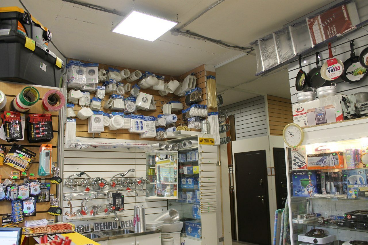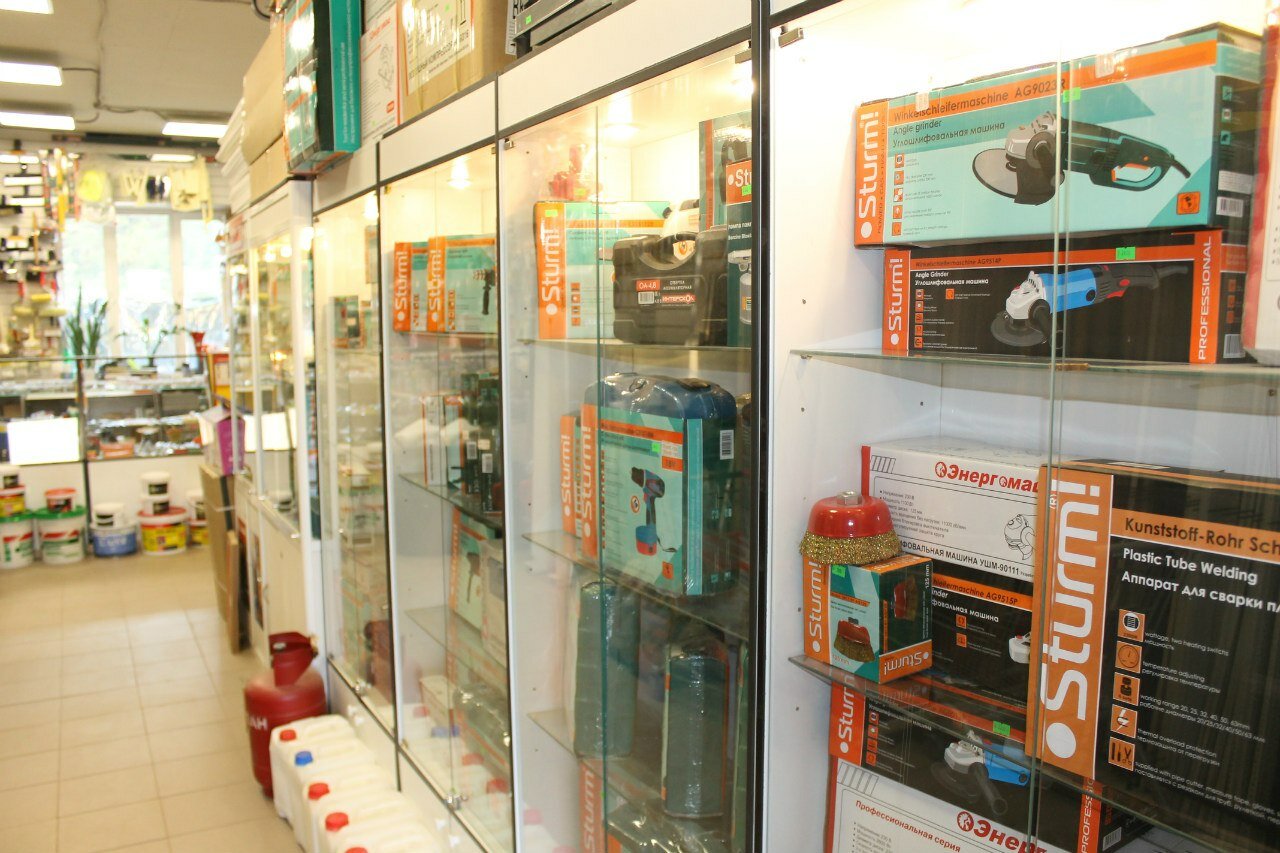 Небольшой хозяйственно строительный магазин. Инженерная сантехника, метизы, канализационные переходники, отводы. Много ручного инструмента: шпатели, свёрла и прочее. Вёдра. Строительные материалы: клеи, шпатлёвки, пена, цементные смеси. Магазин много раз выручал — не надо было ехать на рынок. Есть оплата картой, дают чек, возможен возврат.