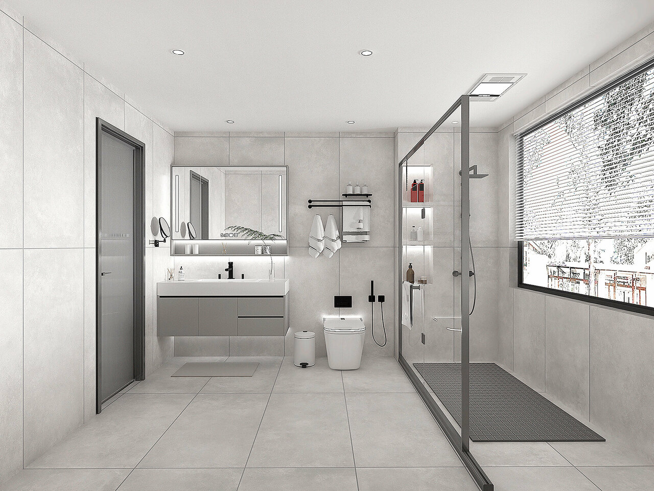 Коллекция керамогранита Onega представлена в трех оттенках: серый, светло-серый и черный.