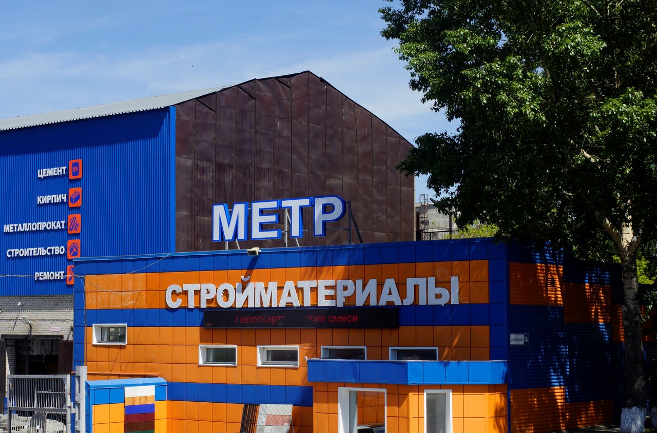 Строительный магазин «Метр» находится в Барнауле по адресу: ул. Попова, 258Д. Предлагает широкий ассортимент материалов, инструментов и товаров для строительства, ремонта и отделки. Работает ежедневно с 08:00 до 20:00. Контактный телефон: +7 (3852) 50-00-85.