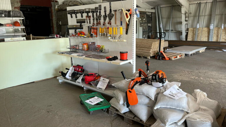 - Большой ассортимент товаров для строительства и порядка на участке