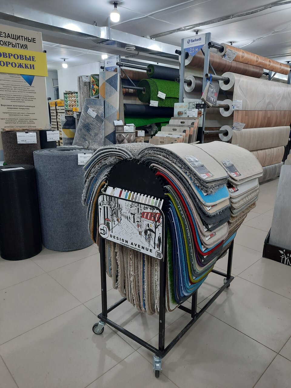 - Большой выбор товаров (особенно линолеума)