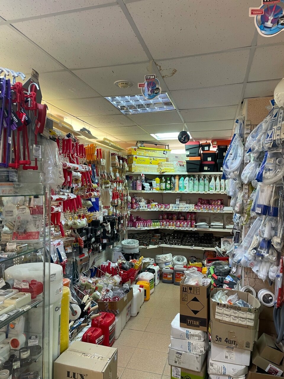 Ассортимент хороший: для ремонта, отделочных работ, немного хоз- и электро-товаров, инструмент, краски, замки, дверные ручки, строительные смеси, плинтусы и т.д. Но помещение очень маленькое, тесно, не весь товар можно сразу увидеть. Цены нормальные.