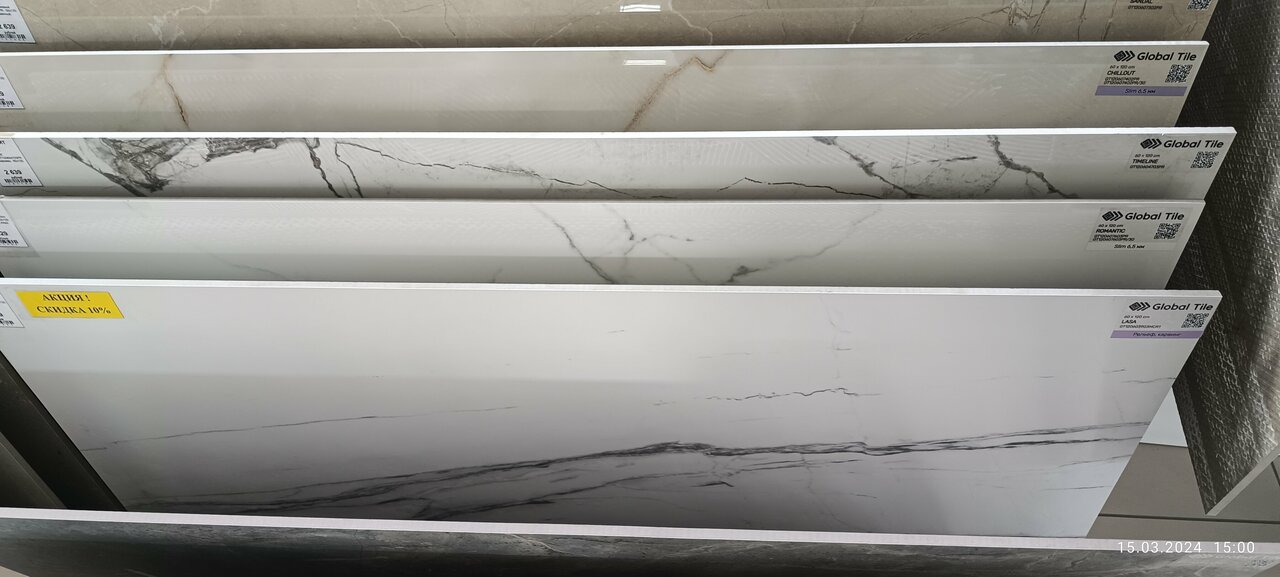 Огромный выбор плитки. Но к сожалению есть только выставочные образцы. Приехать и сразу купить не получится, нужно оплатить и ждать неделю. Причем без права на отказ, хотя оттенки могут отличаться от образца