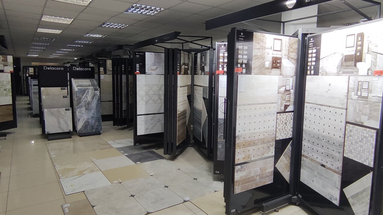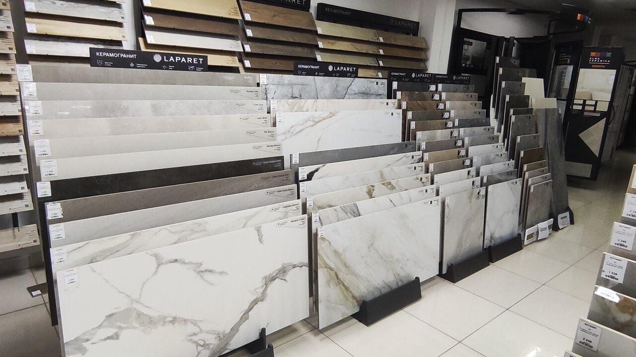 - Большой ассортимент плитки и керамогранита
