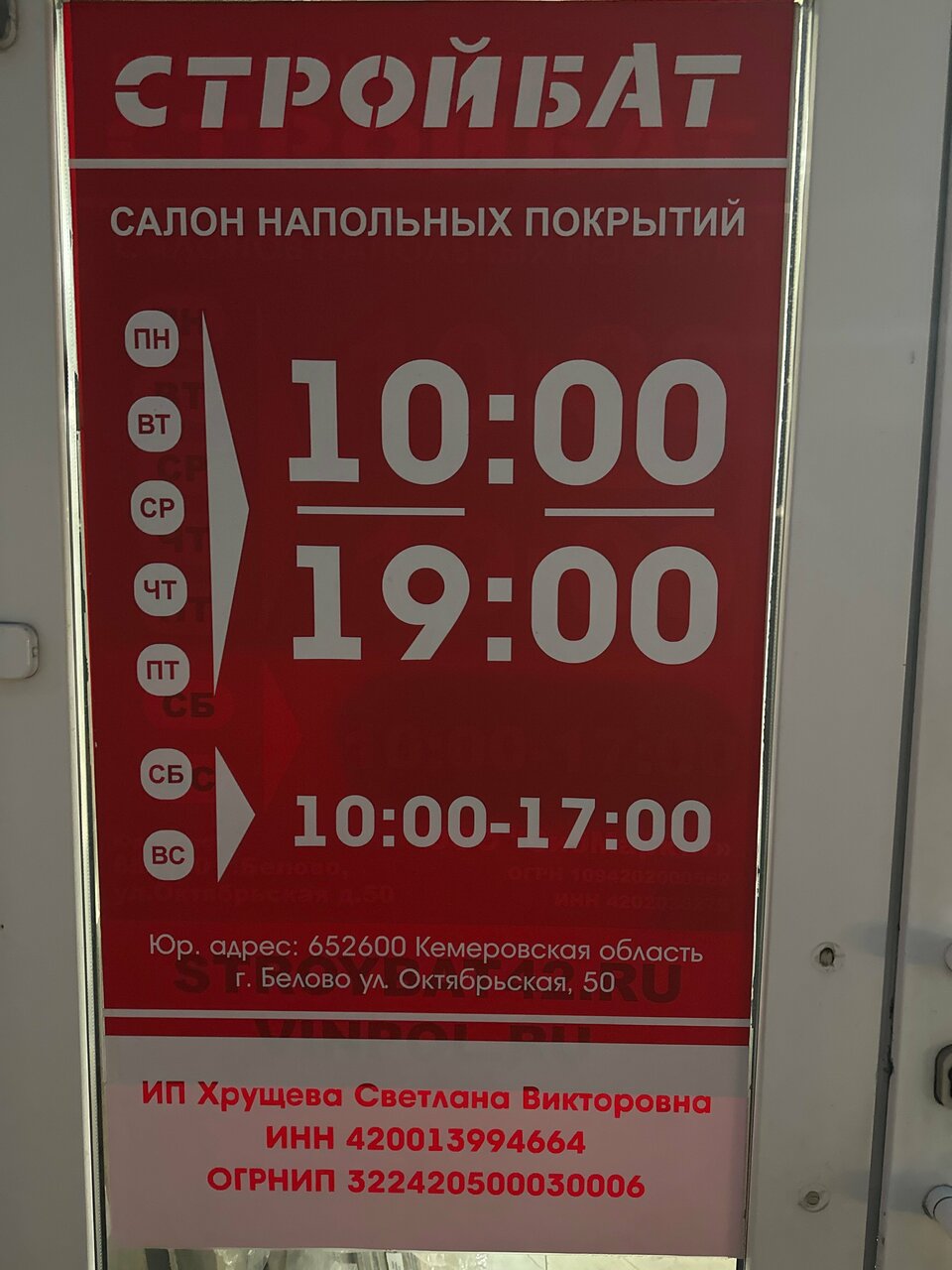 Стройбат-сеть салонов напольных покрытий в Белове по адресу Октябрьская улица, 50: каталог товаров, официальный сайт, цены, режим работы, отзывы посетителей, номер телефона.