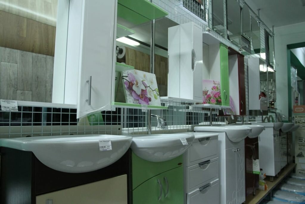 - Широкий выбор линолеума, душевых кабин, сантехники