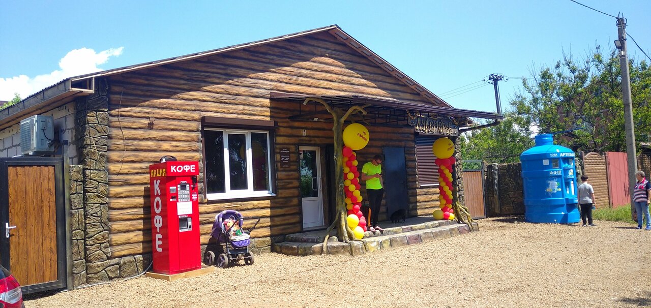 Внешне очень необычно,а так магазин как магазин.Но для местных и отдыхающих людей очень удобно,так как он рядом.