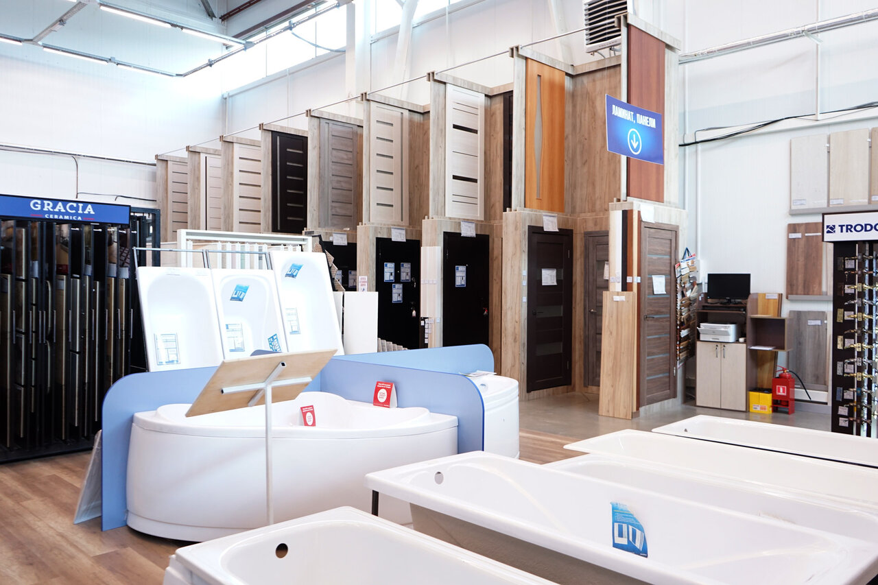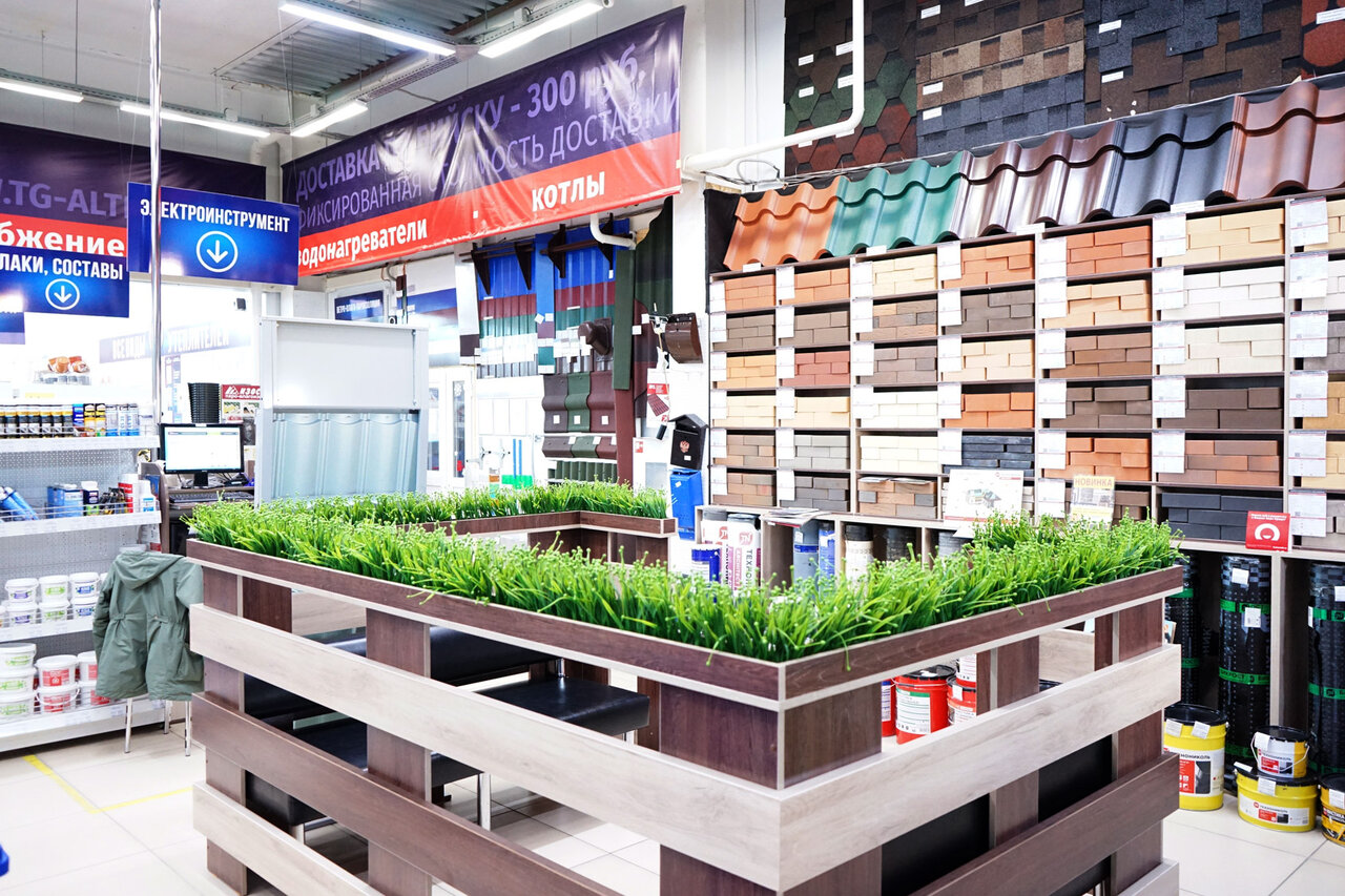 Хороший выбор материалов, красивый снаружи и внутри магазин, внимательный персонал