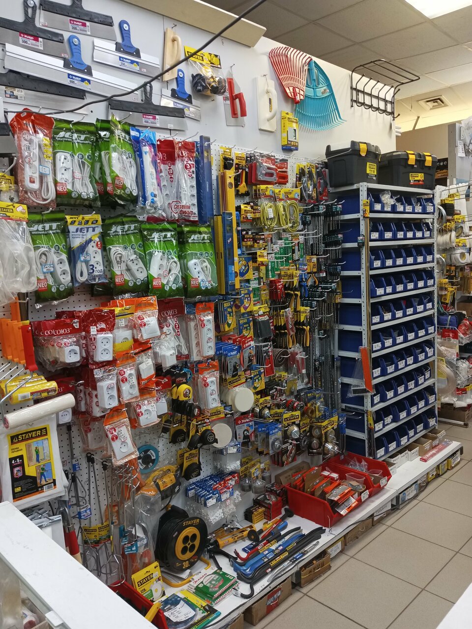 Есть все для мелкого ремонта, строительные смеси ,инструмент ,крепеж хозтоваров, лакокрасочных материалы, электро инструмент, сантехника, электрика.