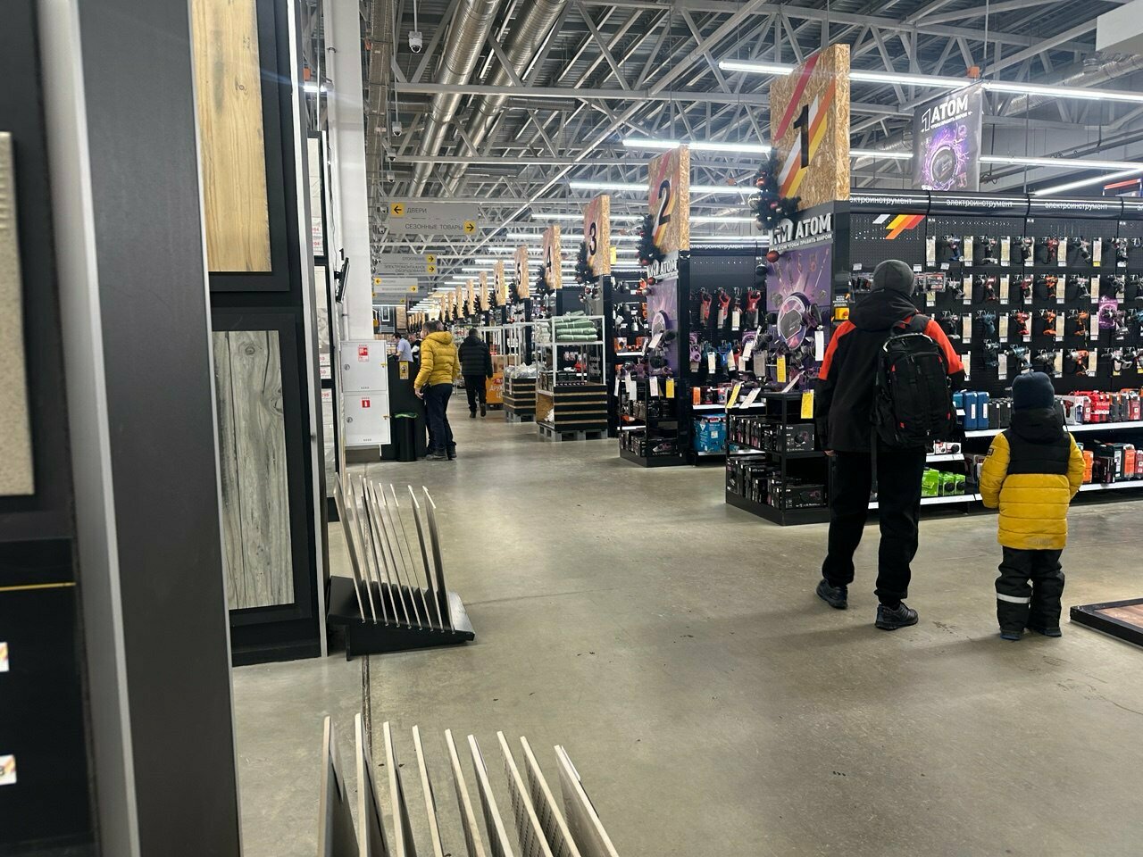 5/5 1 удобное место расположение. 2 большой выбор в магазине. 3 в каждом отделе есть кнопки вызова работника. Не надо искать работников по всему магазину. 4 часть с выдачей заказа продумана до мелочей( выбрал,оплатил и поехал на склад для выдачи) Мне все понравилось. Советую.