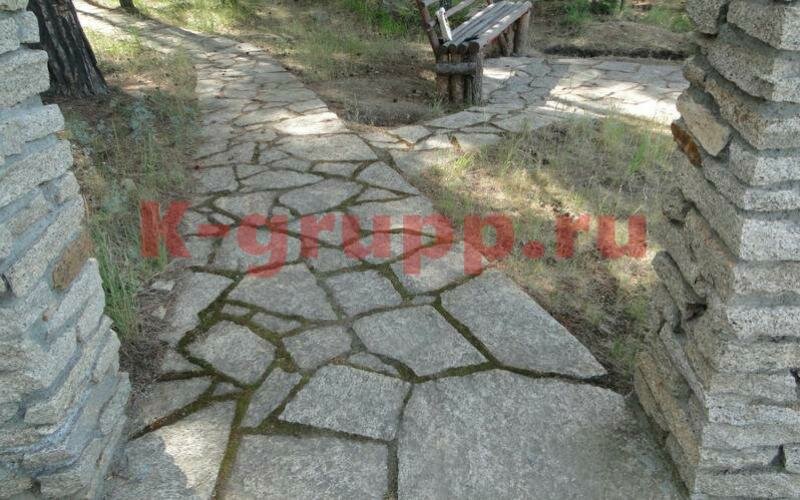 - Наглядные примеры использования камня (тропинки, скамейки, беседки)