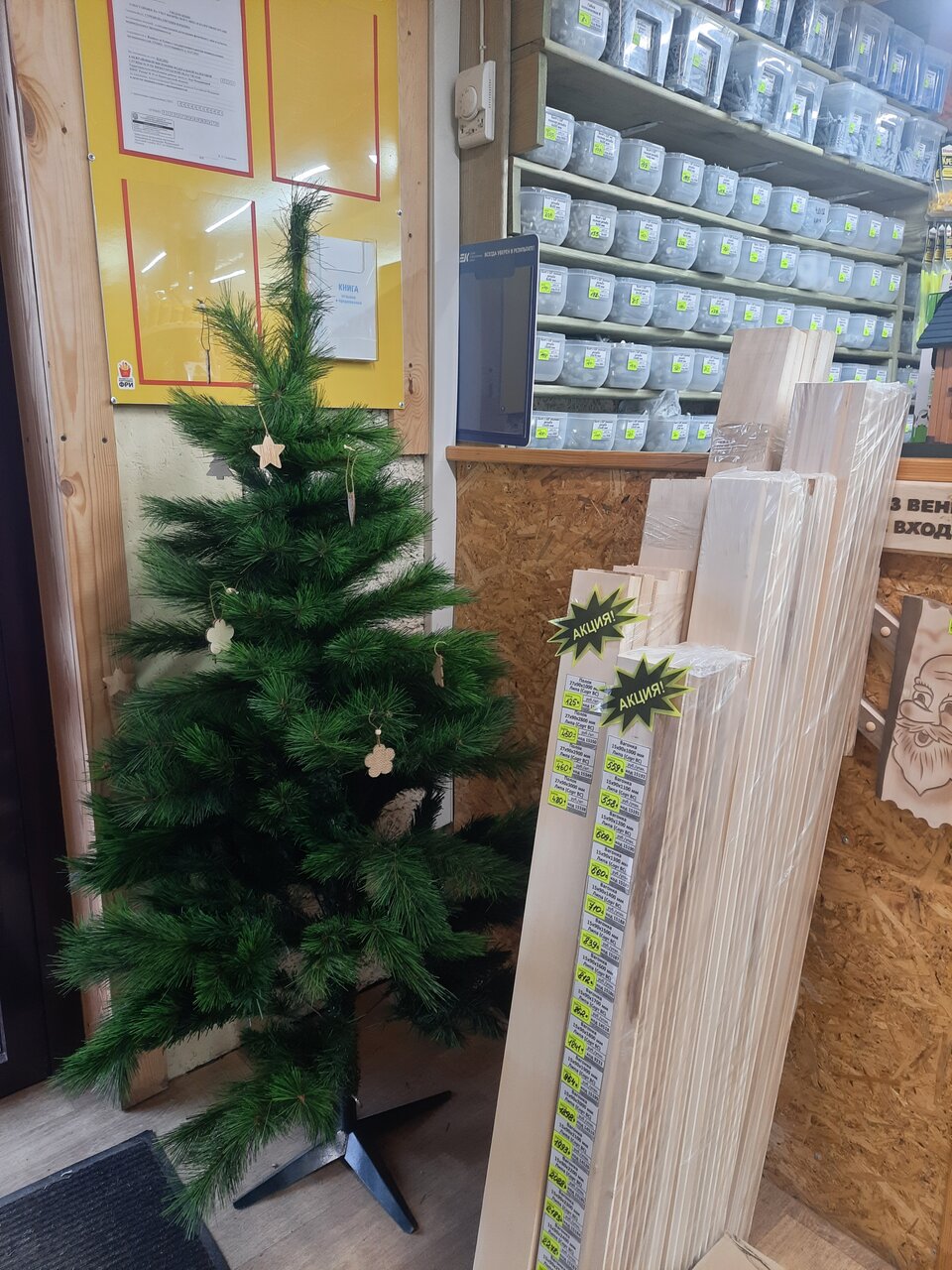 Магазин не очень большой. Товары разложены не наглядно. Это не магазин самообслуживания. Всё что нужно надо спрашивать на кассе. Довольно дорого. По сравнению с ценами в НН. При оплате наличными, кассир не выдала кассовый чек, а только товарный. Парковка есть небольшая.