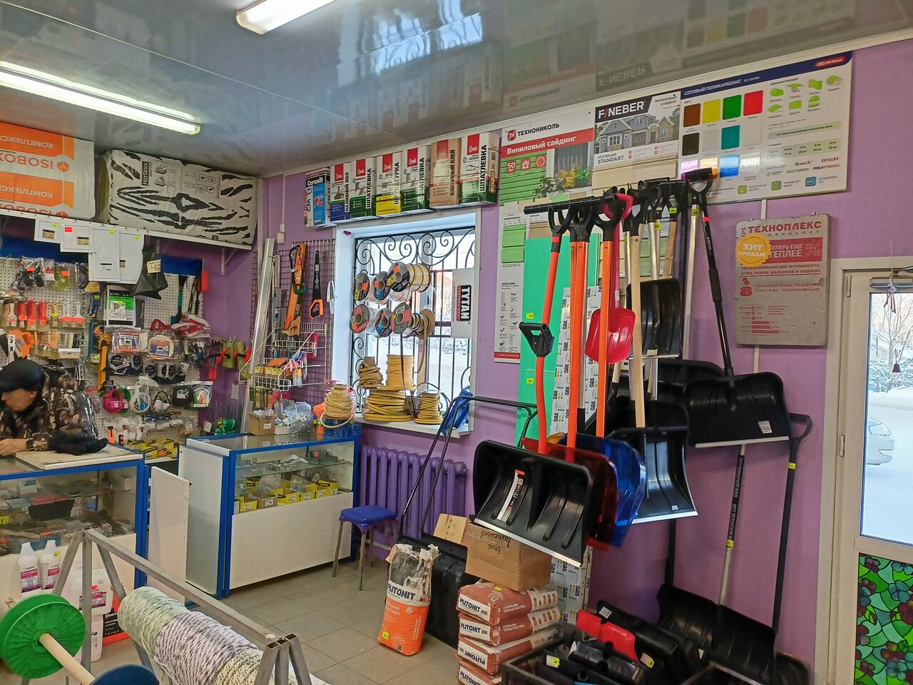 Выбор не велик но самое простое и необходимое есть, цемент, клей, утеплитель.