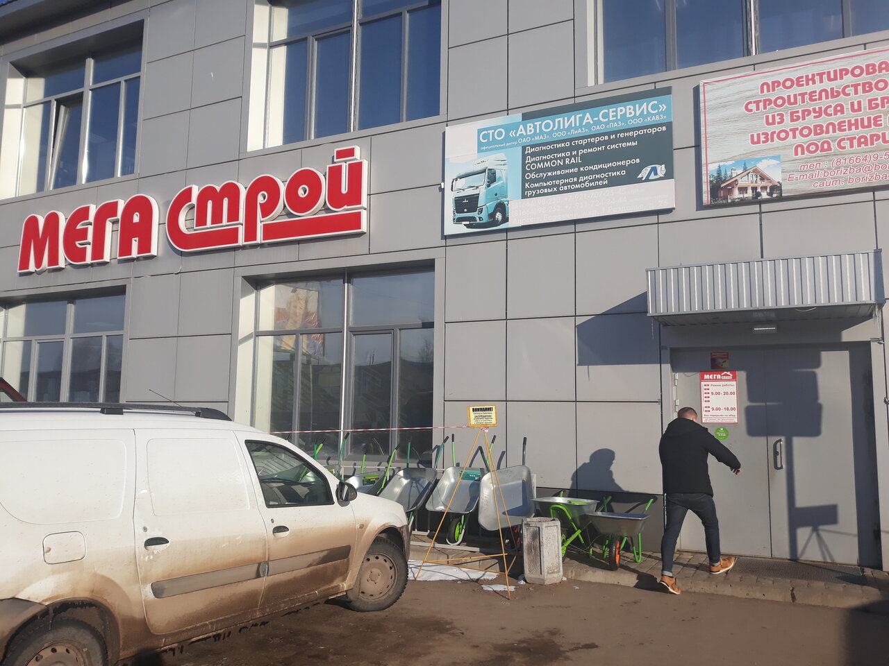 Мегастрой — строительный магазин в Боровичах, предлагающий широкий ассортимент материалов, инструментов и товаров для ремонта и отделки. Расположен по адресу: ул. Советская, 131. График работы: пн-пт 09:00–20:00, сб-вс 09:00–18:00. Контакты: +7 (81664) 4-78-27, +7 (960) 209-22-66.