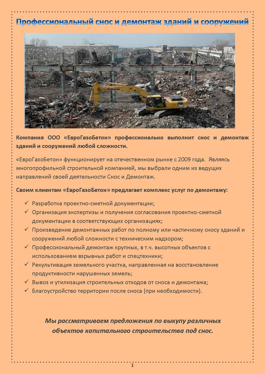 Снос зданий, стройматериалы оптом