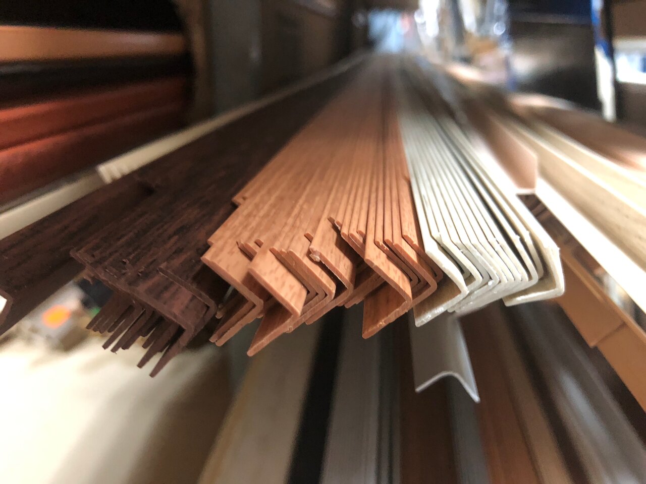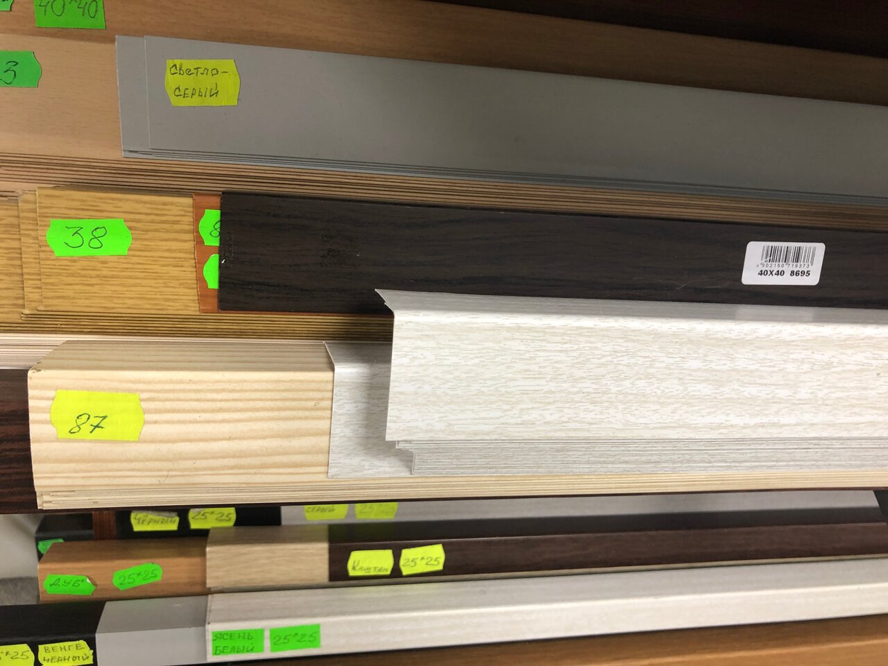 Неплохой выбор плинтусов, порогов, профилей , пленки самоклеящейся, в ом числе витражной