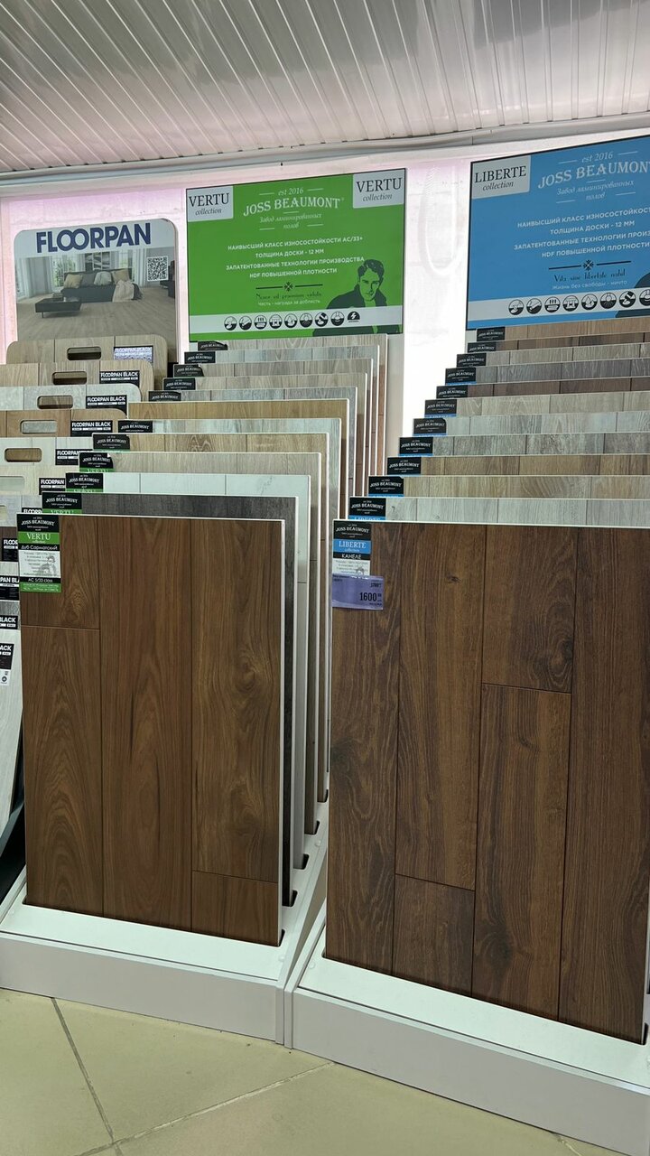- Широкий ассортимент (двери, плитка, ламинат и др.)