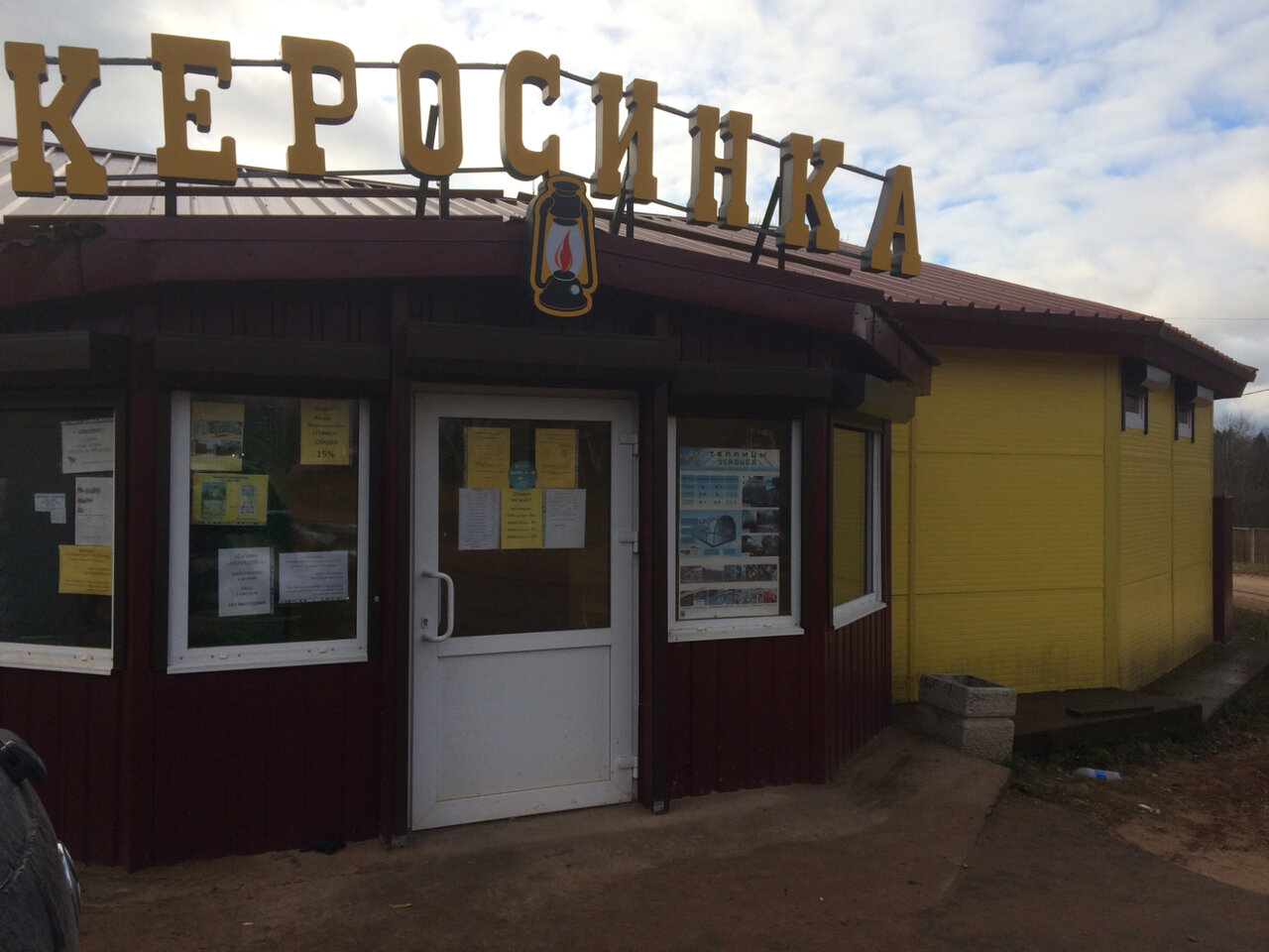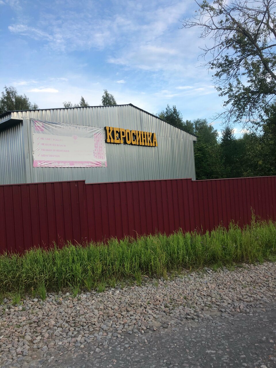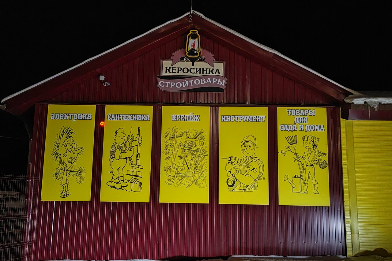 Керосинка — строительный магазин в посёлке Будогощь (Ленинградская область). Ассортимент включает строительные материалы, инструменты и товары для ремонта. Работает ежедневно с 08:30 до 20:00 (перерыв 14:00–14:30). Контакты: +7 (921) 570-61-10, +7 (962) 726-58-11. Адрес: ул. Советская, 2Б.