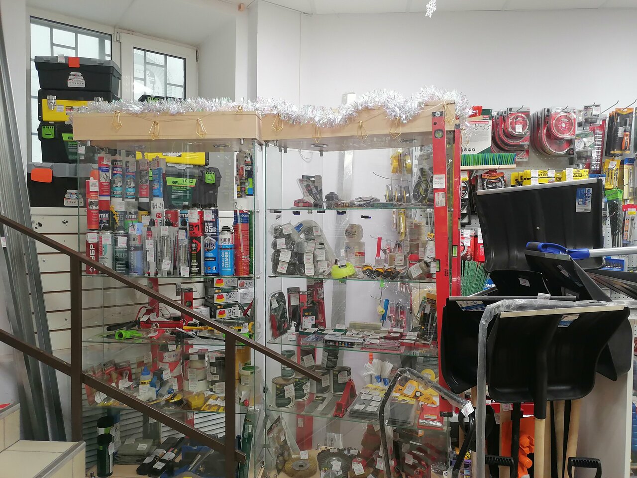 - Хороший ассортимент товаров (особенно крепежа и ручного инструмента)