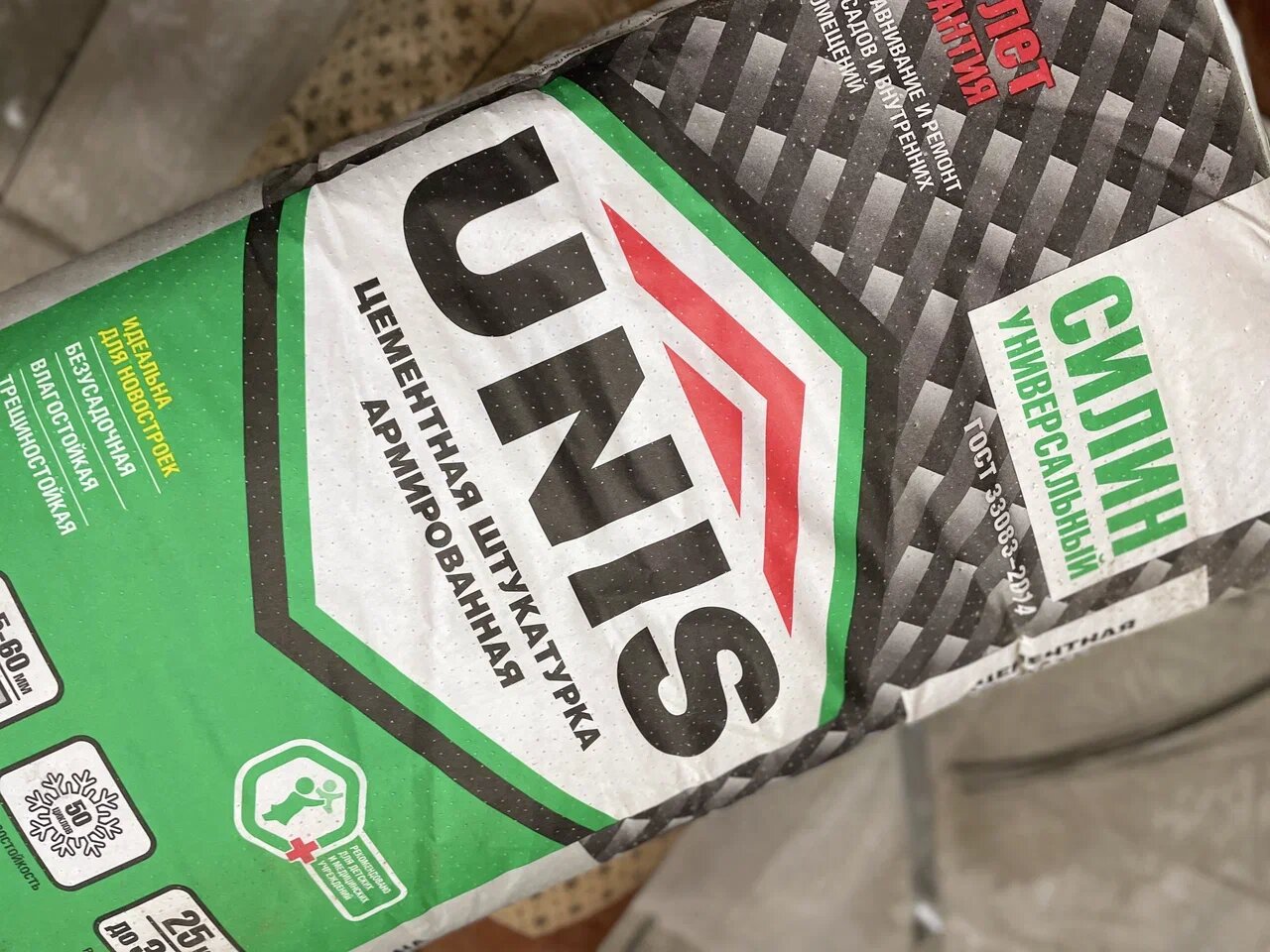 - UNIS Силин Универсальная штукатурка цементная армированная (25кг) 777₽