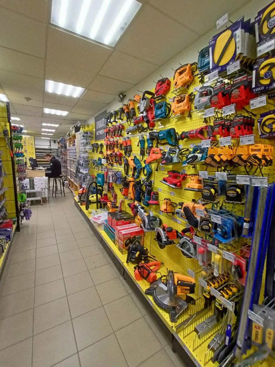 Хороший магазин строительных товаров,умеренные цены,а ещё там очень вкусный кофе и самый дешёвый.