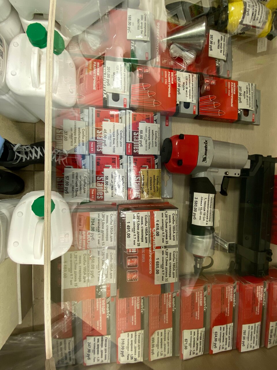 Ножовка, долото, молоток, киянка, кувалда, головка торцевая, ключ трещётка, плоскогубцы, длинногубцы, бокорезы, заклёпочник, топоры, угольники, зубило, ножницы по металлу, уровень, ключ рожковый, лом-гвоздодёр, скобы, степлеры, рулетки, очки защит...