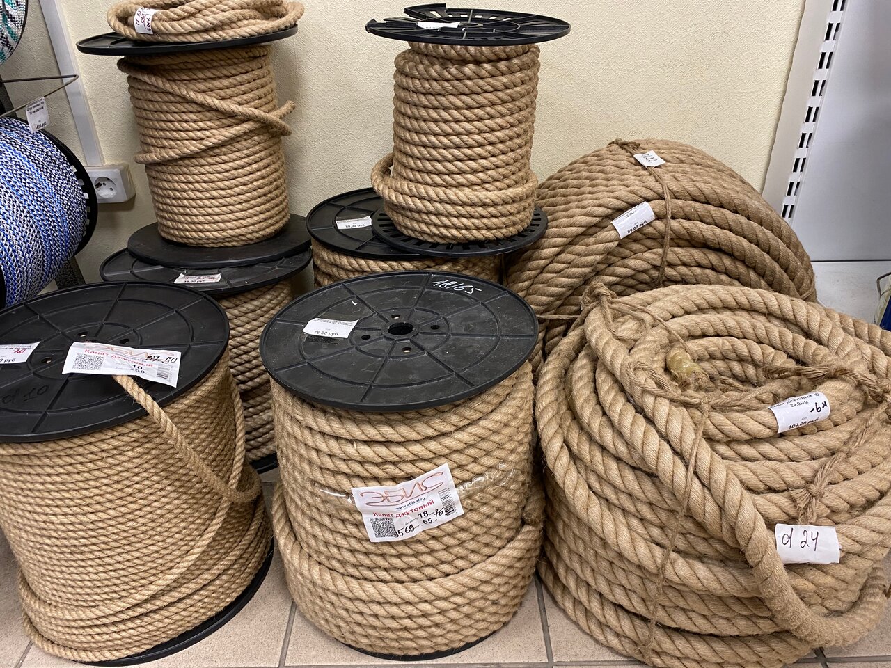 Лён-джут в ассортименте. Размеры - 5/100, 5/150, 10/100, 10/150. От 182 руб. (5х100) за рулон (по 20м). Цена не является публичной офертой, уточняйте цены по телефону или в магазине.