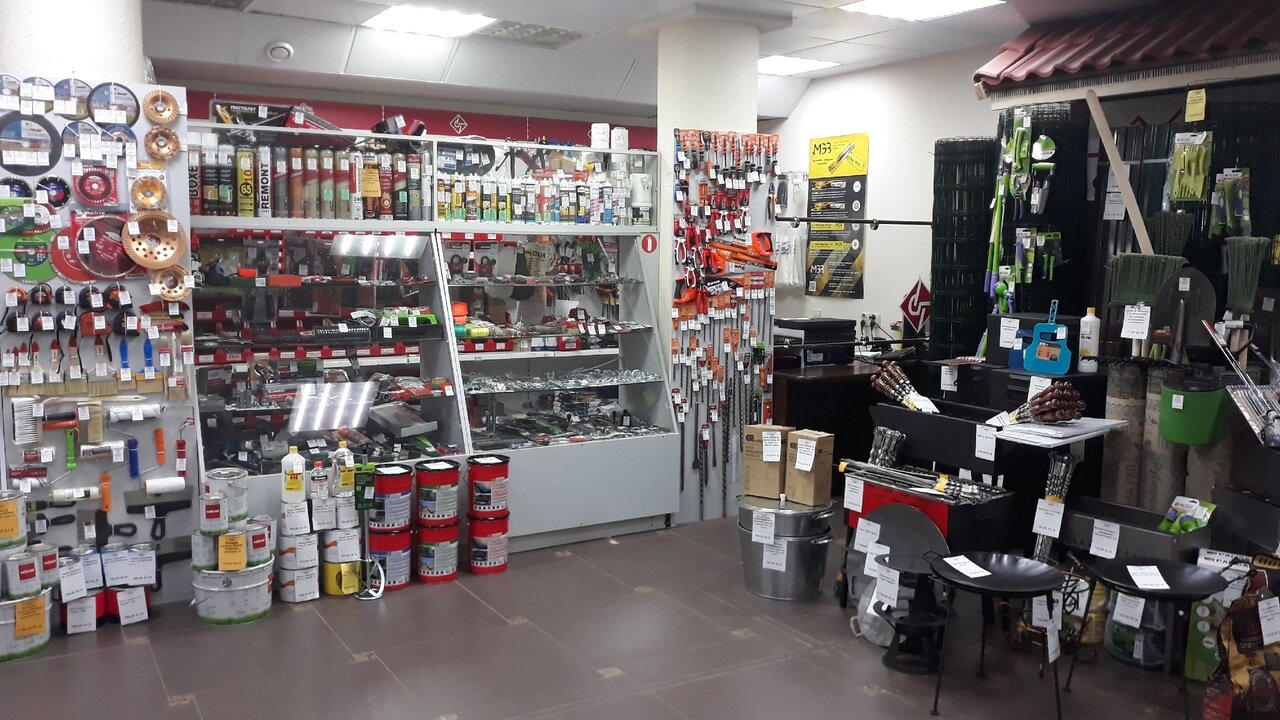 - Хороший ассортимент (метизы, инструменты, крепеж, расходники)