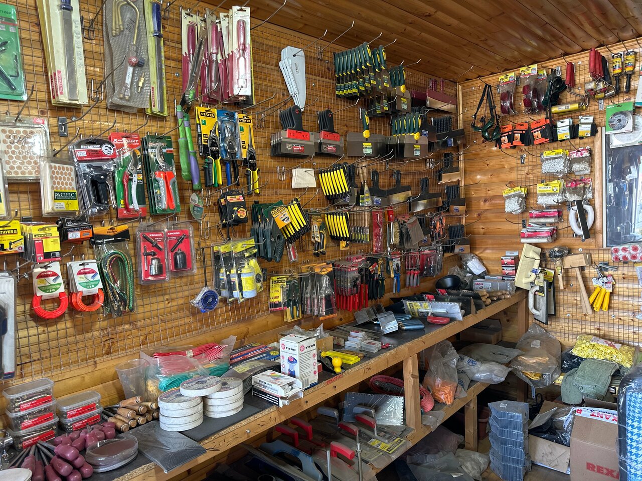 - Большой ассортимент (металл, крепеж, стройматериалы).