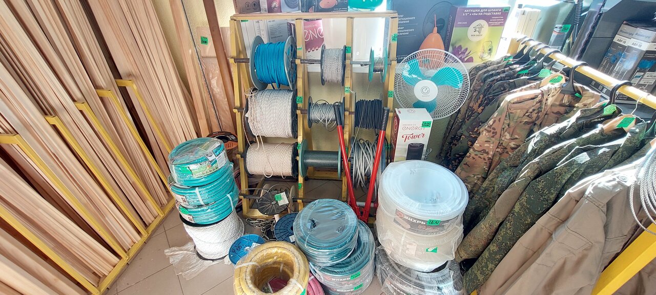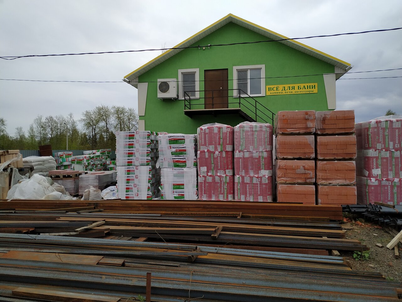 Большой выбор стройматериалов, дерево хранится под крышей, метал на улице. На втором этаже товары для печей и бани. Есть электроинструмент.