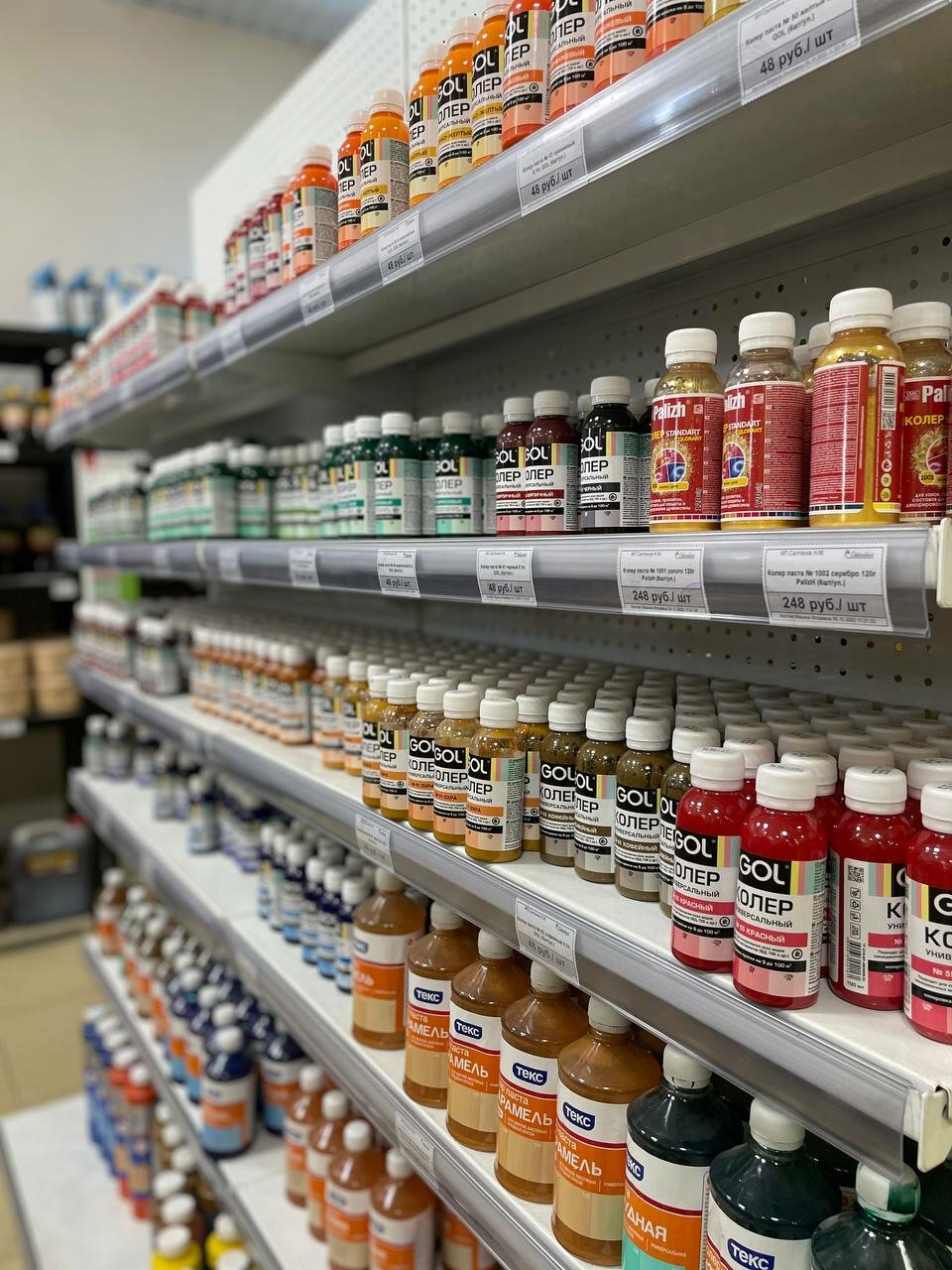 - Минимальный выбор по некоторым категориям (например, краски)